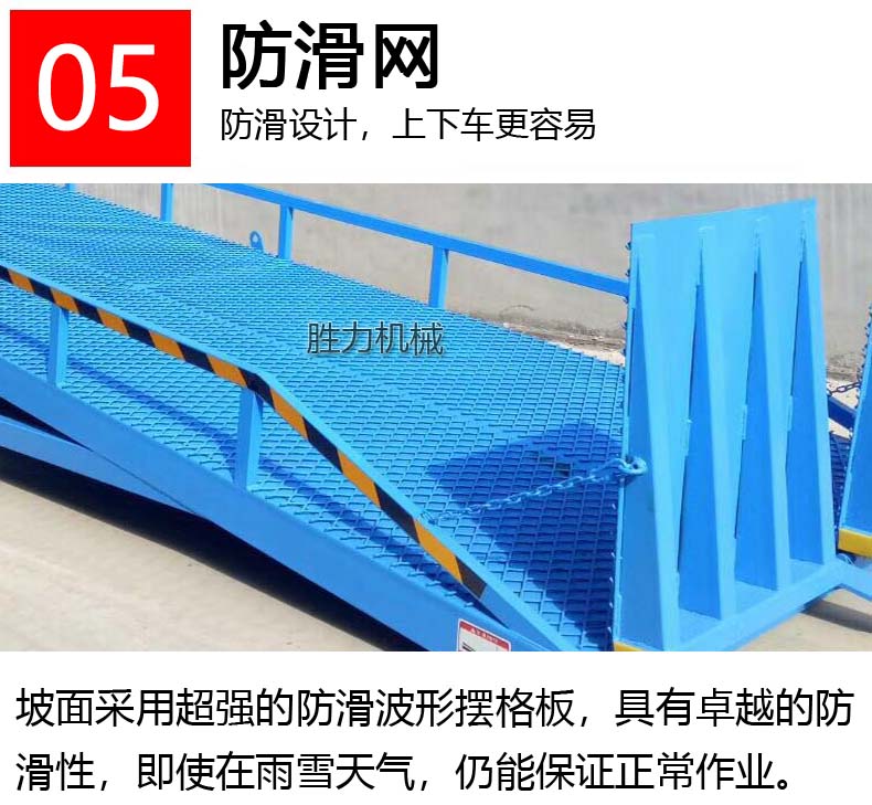 2、接納防滑斑紋鋼板,使平臺有杰出的防滑機能。